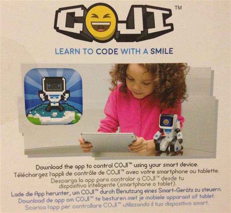 Your junior coder will have fun controlling Coji. Send Coji a set of recorded commands and he’ll react by moving around, making funny sounds, and displaying different emojis on his screen.