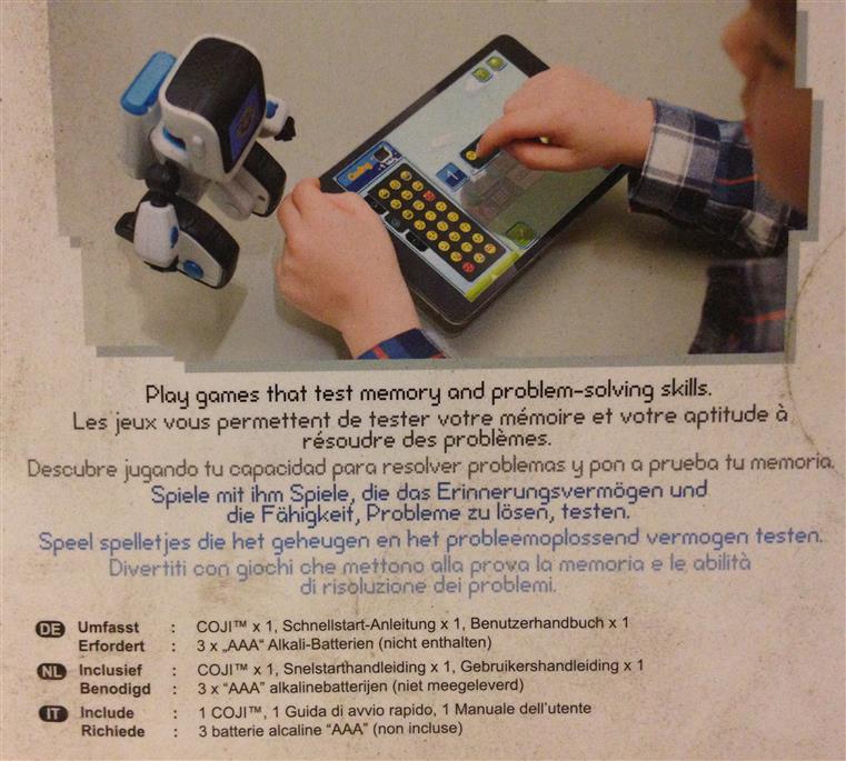 Coji challenges his playmates with different skill-testing games that encourage critical thinking. In one game, your child will use emoji code to safely direct Coji’s digital avatar through a maze - avoiding obstacles along the way. In another, Coji becomes a physical controller for the digital world.